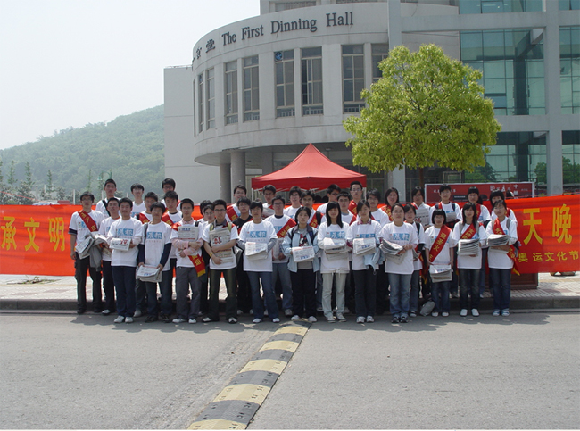 上午10点,同学们便齐集一食堂门口,换上了活动标志的衣服和绶带。在老师分配完任务之后便雀跃着进入了人群之中。骄阳似火,可是却不如同学门心中跳跃的火苗旺,他们顶着烈日奔走于校园中,食堂、宿管站、超市都能看到那飘扬的绶带以及他们殷勤的身影。
