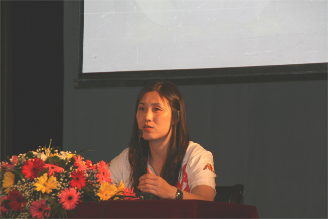 孙玥是中国女排发展史上的杰出代表,在其十年的国手生涯中参加了三届奥运会,取得了1996年亚特兰大奥运会银牌等优异成绩。目前,孙玥就读于南京大学新闻传播系,并担任江苏省女排教练、2008年北京奥运会央视特约解说嘉宾、2008年北京奥运会江苏境内火炬手等社会职务。孙玥的报告分四个部分:奥运历程、目前的个人生活、对北京奥运会和中国女排的期待、对南中医学子的勉励。孙玥幽默风趣的讲话风格、不平凡的奥运经历以及代表的女排精神深深感染了在场的每位师生,鼓励大家顽强拼搏、自强不息,努力克服学习、工作、生活中的困难,不断取得进步和成功。