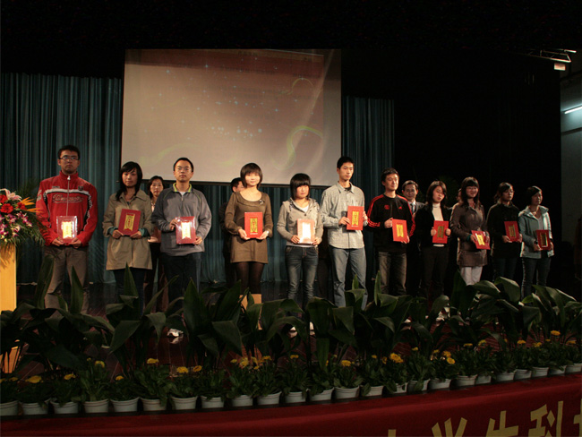 开幕式上,黄煌教授和外校科协代表分别致辞,对我校第十四届大学生科技文化节的隆重开幕表示热烈祝贺。宣传部刘晓部长,党办夏登杰主任分别宣读了《关于表彰“挑战杯”南京中医药大学第七届大学生课外学术科技作品暨创业计划竞赛获奖集体(个人)的决定》和《关于表彰大学生素质拓展优秀指导教师的决定》。党办夏登杰主任、组织部程海波副部长、宣传部刘晓部长、团委郑晓红书记、学工处屠宏斐副处长为“挑战杯”获奖同学代表进行颁奖。学校党委常委、副校长陈涤平教授为“挑战杯”优秀组织奖获得者基础医学院、第一临床医学院、药学院颁奖。药学院还获得了“挑战杯”流动奖杯。当陈涤平副校长为大学生素质拓展优秀指导教师进行颁奖时,台上、台下掌声雷鸣,将开幕式推向了一个新的高潮。我校广大教师秉承“仁德、仁术、仁人”的教育理念,积极投身大学生的学习学术、科技创新、社会实践等第二课堂素质拓展活动。在我校大学生中形成了浓郁的科技氛围、良好的学习风气、积极的创新精神。为我校大学生的全面成材起到了积极的推动作用,为研究教学型大学的建设做出了积极的贡献。他们“甘于服务、无私奉献”的精神深深地感染了每一个人。 优秀指导教师代表吴皓教授和获奖学生代表吴浩同学分别发言。最后,陈涤平副校长发表重要讲话。陈校长代表学校对本届科技文化节的开幕表示热烈地祝贺,向为活跃校园学术氛围,在大学生学习学术、科技创新、社会实践等第二课堂付出辛勤劳动的各位专家、各位老师以及各级学生干部和同学们致以诚挚地问候,并预祝本届科技文化节各项活动取得圆满成功。陈校长同时对本届大学生科技文化节提了几点要求:一、科技节中各项活动要以宣传和普及科学知识,倡导科学精神,推进科教兴国战略,培养大学生创新意识和创新思维,提高大学生科技创新能力为目的。二、要以科技节为载体,加强和改进校风和学风建设,营造一个健康向上,充满智慧和创新的校园科技氛围,为广大同学钻研科学,展示才能,提高专业素质、综合素质和创新能力搭设舞台。三、各主办单位和承办单位要把本届科技节办成服务大学生成长成才、弘扬学术精神和中医人文精神的一次盛会。为培养具有学术精神和创新精神的新一代中医药大学生,为我校研究教学型大学的建设做出更大的贡献。当陈涤平副校长宣布南京中医药大学第十四届大学生科技文化节开幕时,全场掌声雷动,欢欣鼓舞。南京中医药大学第十四届大学生科技文化节正式拉开帷幕。