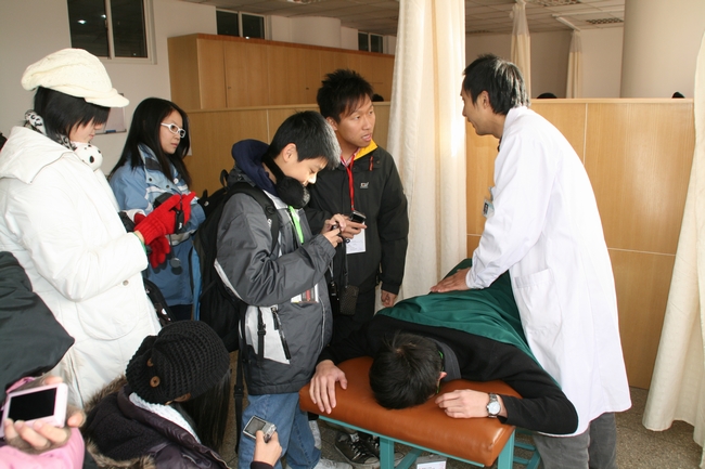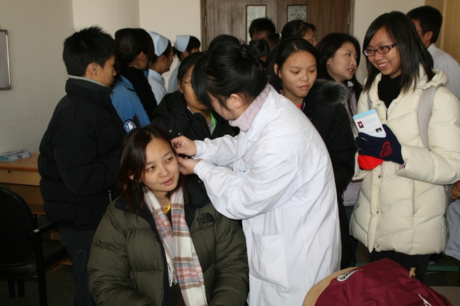 上午10:30分左右,代表团成员与我校红十字青年志愿者们在大学生活动中心二楼小舞厅齐聚一堂。我校红十字会副会长、团委郑晓红书记与代表团徐伟全团长互赠了礼品,双方共同观看了志愿者们精心制作的有关“农民健康百村工程”成果展PPT。代表团的成员们深受感染,很多成员还喜欢上了中医。看完PPT后,双方志愿者进行了别开生面的Muse午餐,双方的志愿者边进餐边进行热烈的讨论,有些香港青少年表示将来一定要报考南京中医药大学,还有的团员希望以后能有机会再来南中医与我们的志愿者们一同参加志愿活动。两地的志愿者们互赠了礼物并依依不舍的合影留念。