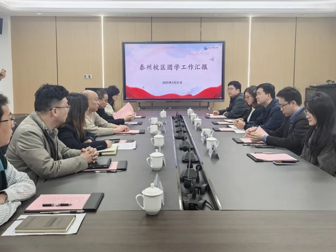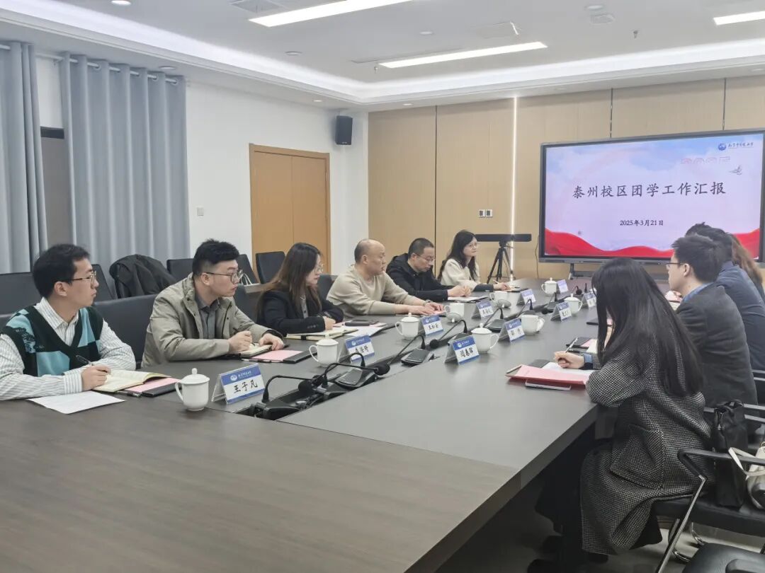在团建工作座谈会上,泰州校区团工委围绕组织建设、思想引领、实践育人等方面作专题报告,重点剖析校区团学工作特色及跨校区协同发展中的瓶颈问题。双方就工作同质化与构建长效交流机制等议题展开研讨,团委党支部书记史文川指出:要通过“党建带团建”构建“一体联动、双向赋能”的工作格局,切实破解工作中存在的堵点难点。与会党员教师结合分管领域,从资源共享、活动联办、队伍共建等维度提出建设性意见,现场就深化协同机制建设达成重要共识。