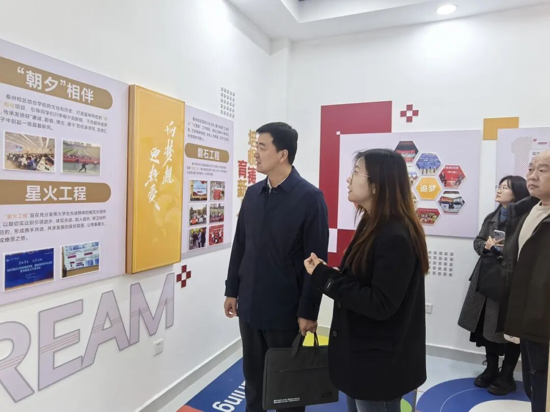 团委党支部首站深入泰州校区团学工作一线,实地走访团工委办公室、学生社团活动室、创新创业孵化基地等党团阵地。党员同志详细查看阵地功能分区、设备配置及文化展示情况,对“青年需求即时响应、党团服务触手可及”的阵地建设理念表示高度认同。通过系统考察泰州校区团学工作硬件设施,为后续优化资源配置、提升服务效能奠定基础。