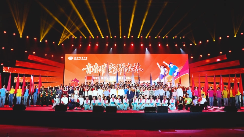晚会在歌曲《红旗飘飘》的深情演唱中步入尾声。校领导和教师代表们挥舞国旗,与在场所有同学一起放声合唱,以青春之声向祖国告白,在红色浪潮中厚植家国情怀,砥砺强国之志。